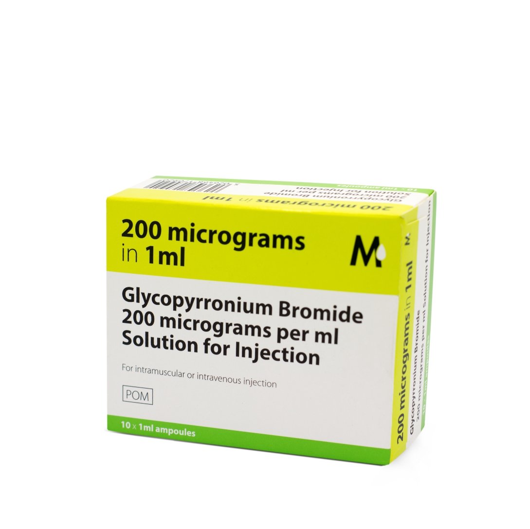 Presentation: Glycopyrronium Bromide 200mcg/ml solution in 1mItransparent ampoule: 10 ampoules/pack